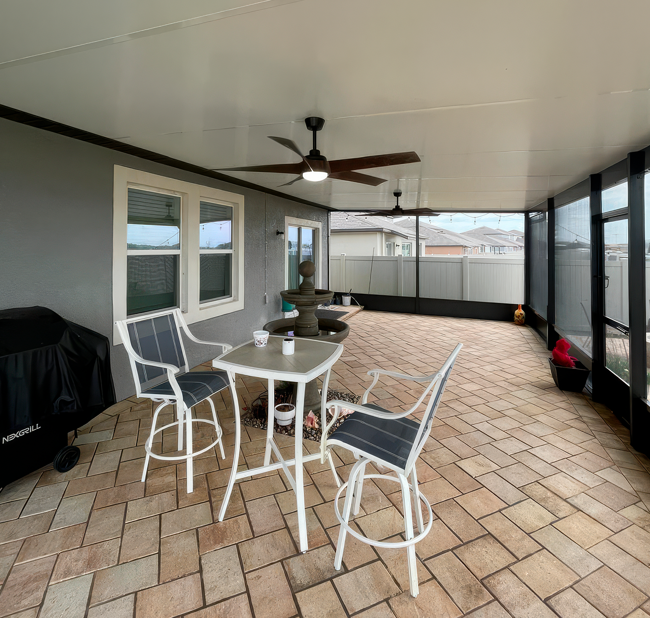 Relax outdoors year-round with a stylish, weather-resistant patio lanai.